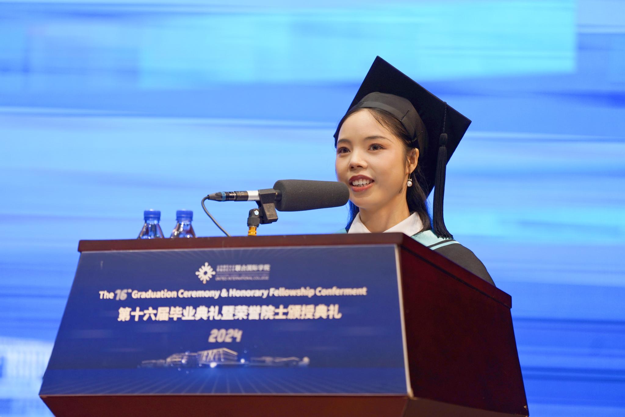 He also shared three advice with the graduates: First and foremost, embrace an open and inclusive mindset; secondly, persist in keeping up with the times and stride towards the world; and finally, embrace a global perspective to explore the world. (Read more: Address to the Graduates - Professor Chen Zhi, UIC President)