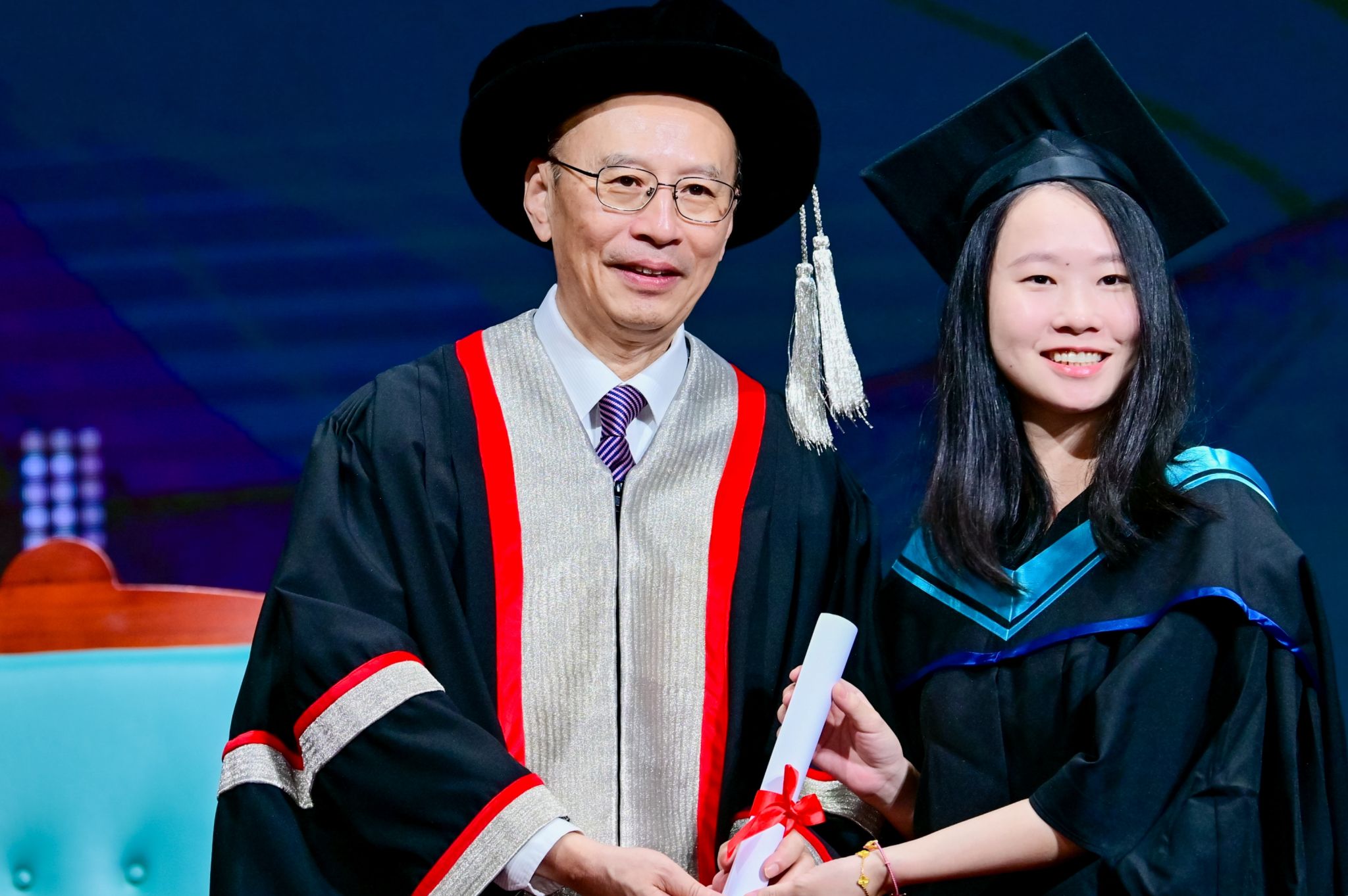 This year’s ceremony also featured the conferment of Honorary Fellowships to five distinguished individuals in science, education, and culture: Nobel Laureate in Economics and Member of the US National Academy of Sciences, Prof Robert John Aumann; Member of the Chinese Academy of Sciences and the Chairman of the Chinese Society for Probability and Statistics, Prof Chen Songxi; American Sinologist and Emeritus Professor from the University of Wisconsin-Madison, Prof William H. Nienhauser, Jr.; National Advanced Individual in Poverty Alleviation, and Founder of the Adream Foundation, Ms Pan Jiangxue; and Founder of SML Group and Founding President of Jao Tsung-I Petite Ecole Fan Club, Dr Simon Siu Man Suen.