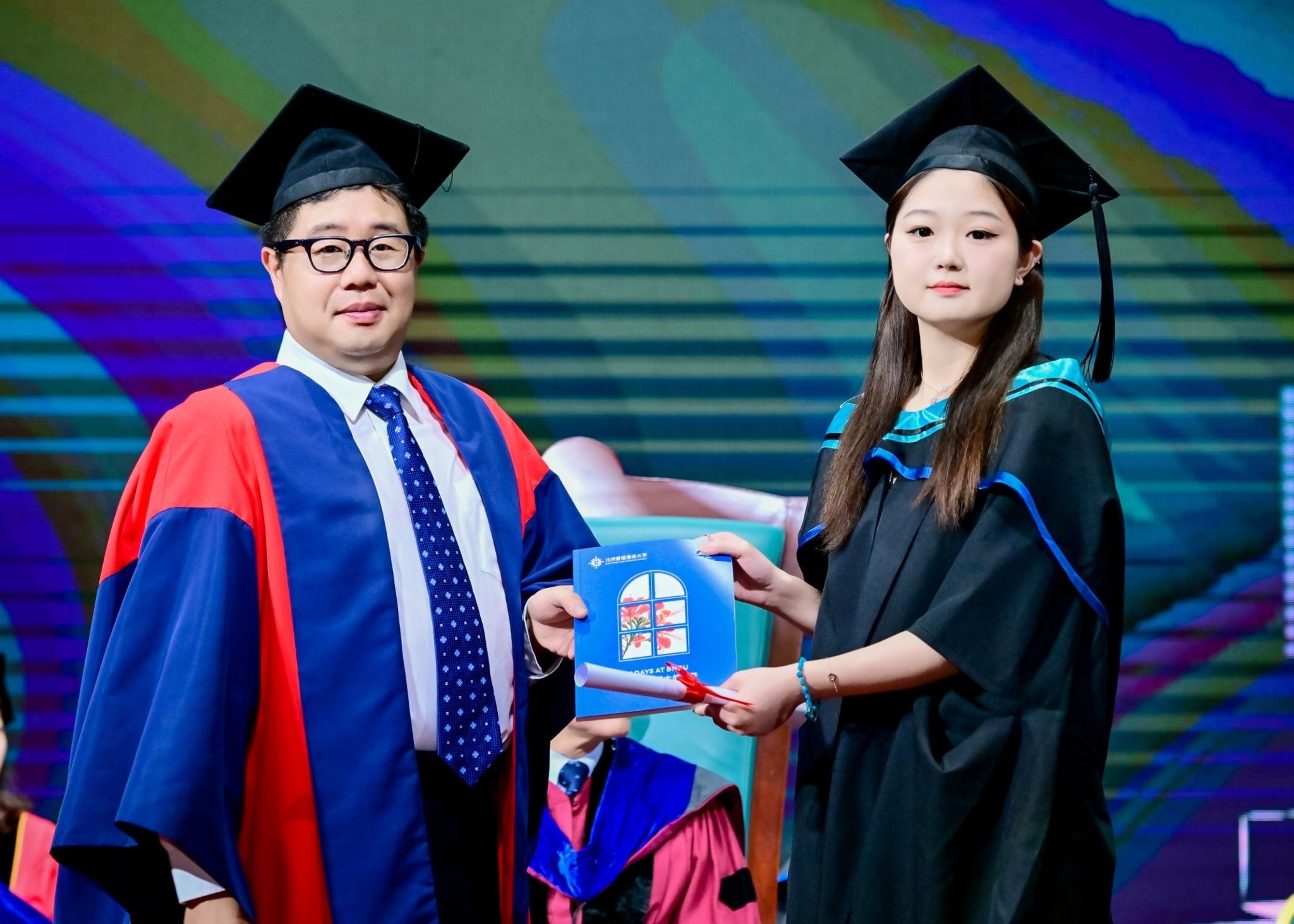 BNBU Associate Vice President (Teaching and Learning) Prof Huang Yu with a graduate