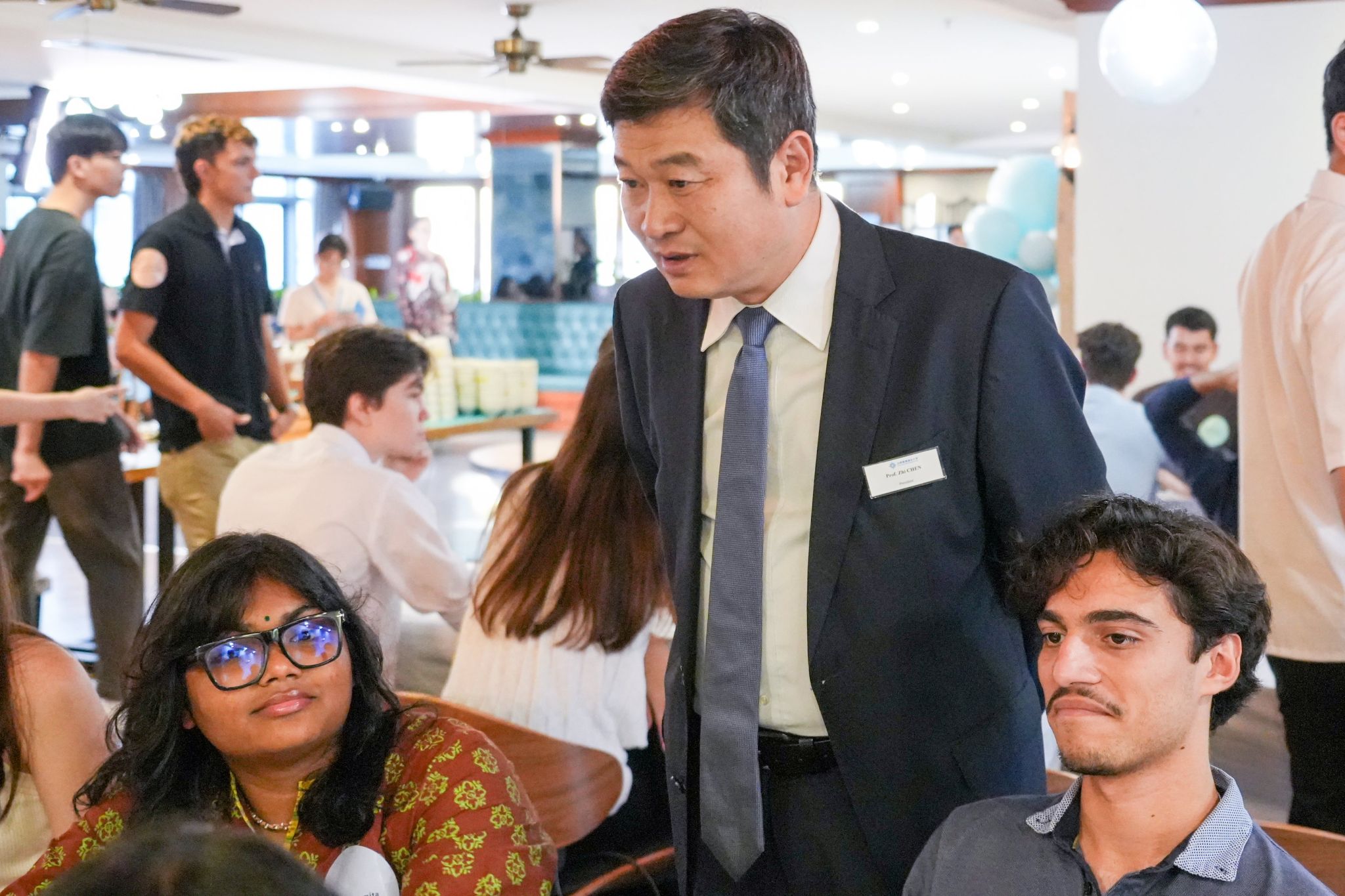 BNBU President Prof Chen Zhi welcomes new international members to the campus during a dinner