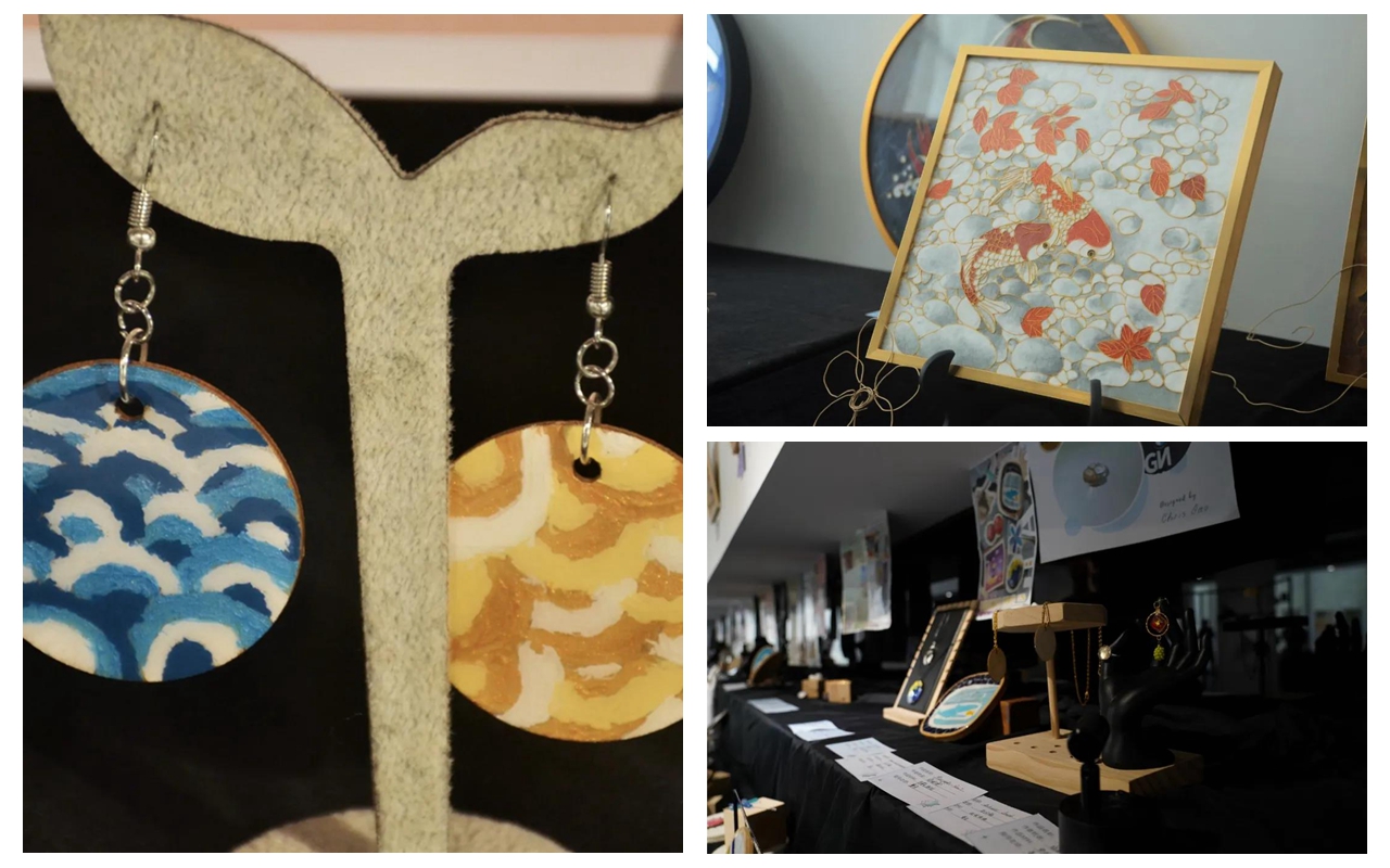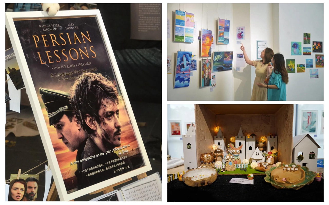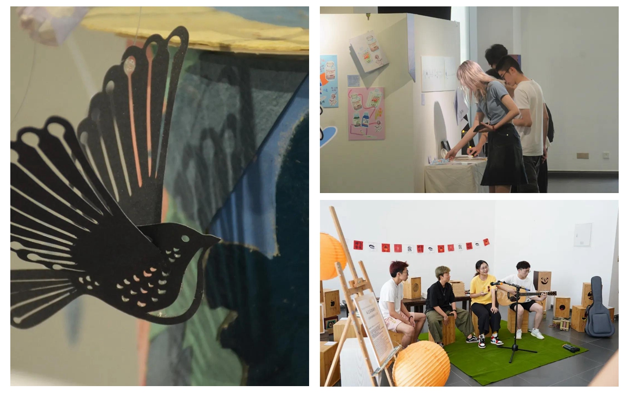 北师港浸大(UIC)全人教育艺术体验课程学生结业作品展"Chill on Saturday, Release the Soul"于5月17日在文化创意群落开展,共展出300多名学生的近400件作品,涵盖了掐丝珐琅、陶艺、纸艺、油画、水彩、插画、漆画、工笔水墨、玻璃工艺等艺术种类,还有雅乐、古琴等课程的衍生展品,种类繁多,表现形式多元,展览将持续至27日。