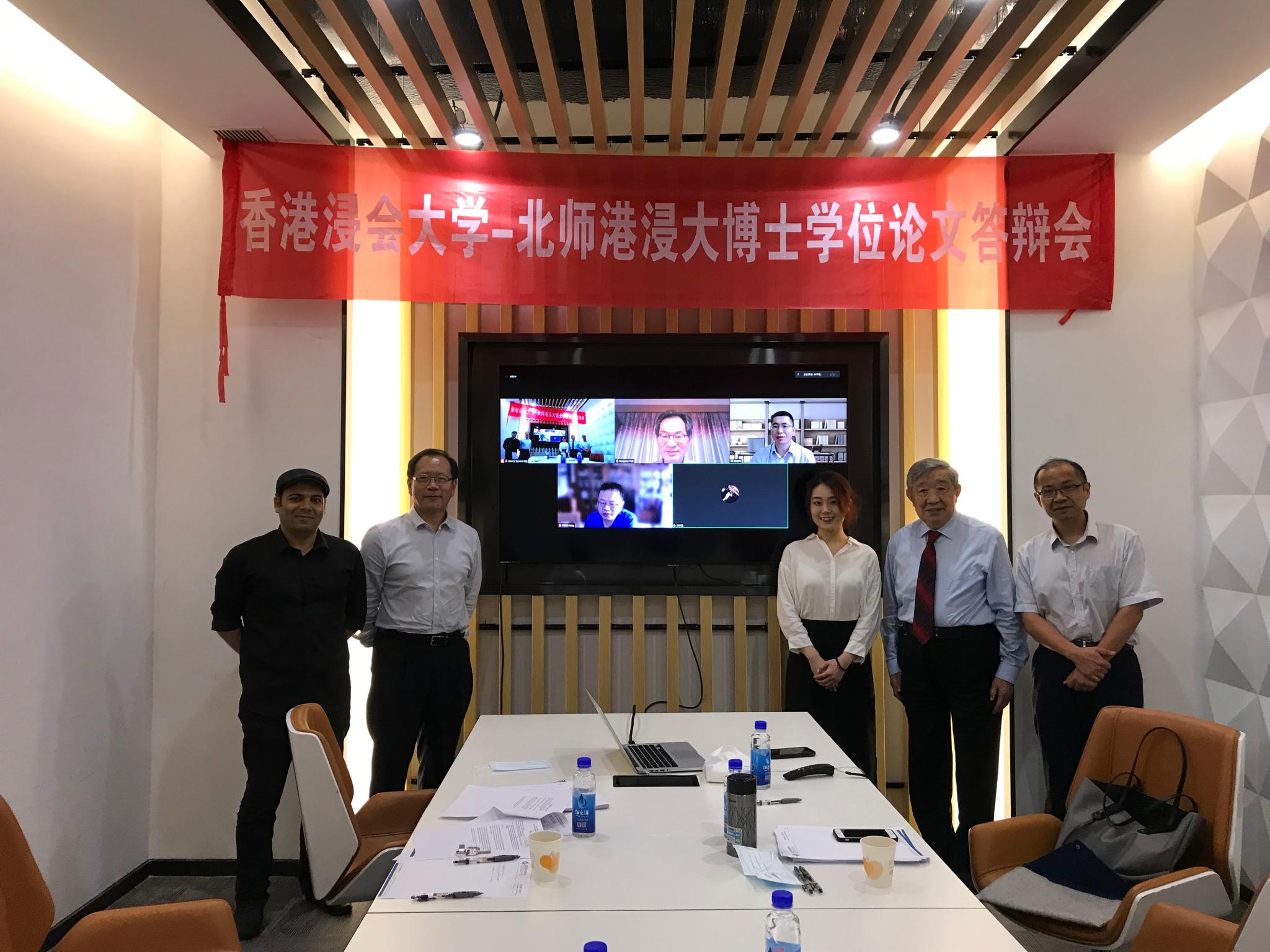 林宇璇(右三)在博士学位论文答辩会上与学院老师(从左至右)