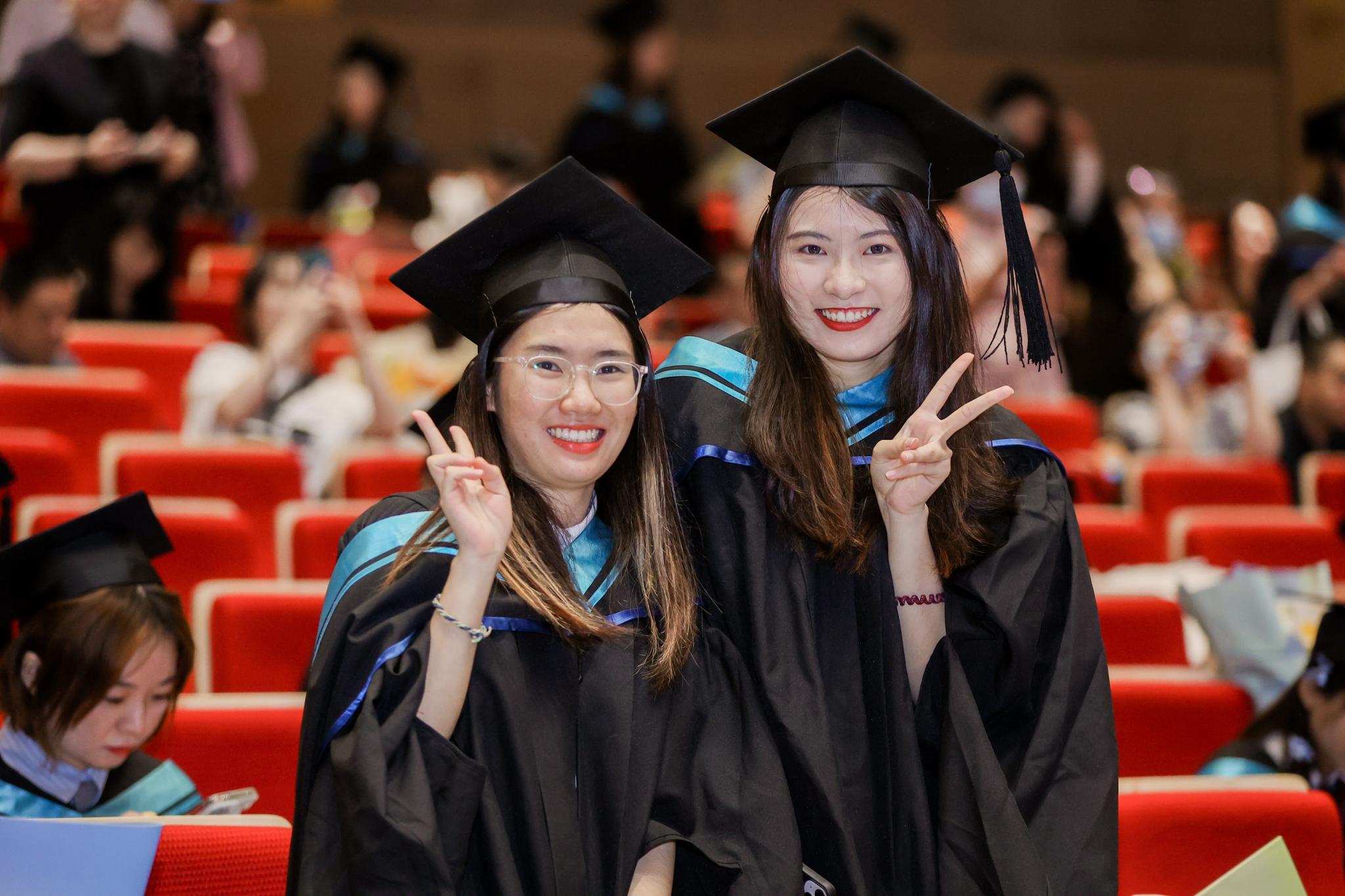 毕业典礼上一张张灿烂的笑脸被镜头定格。更多精彩内容,可查看毕业典礼视频直播完整回放。