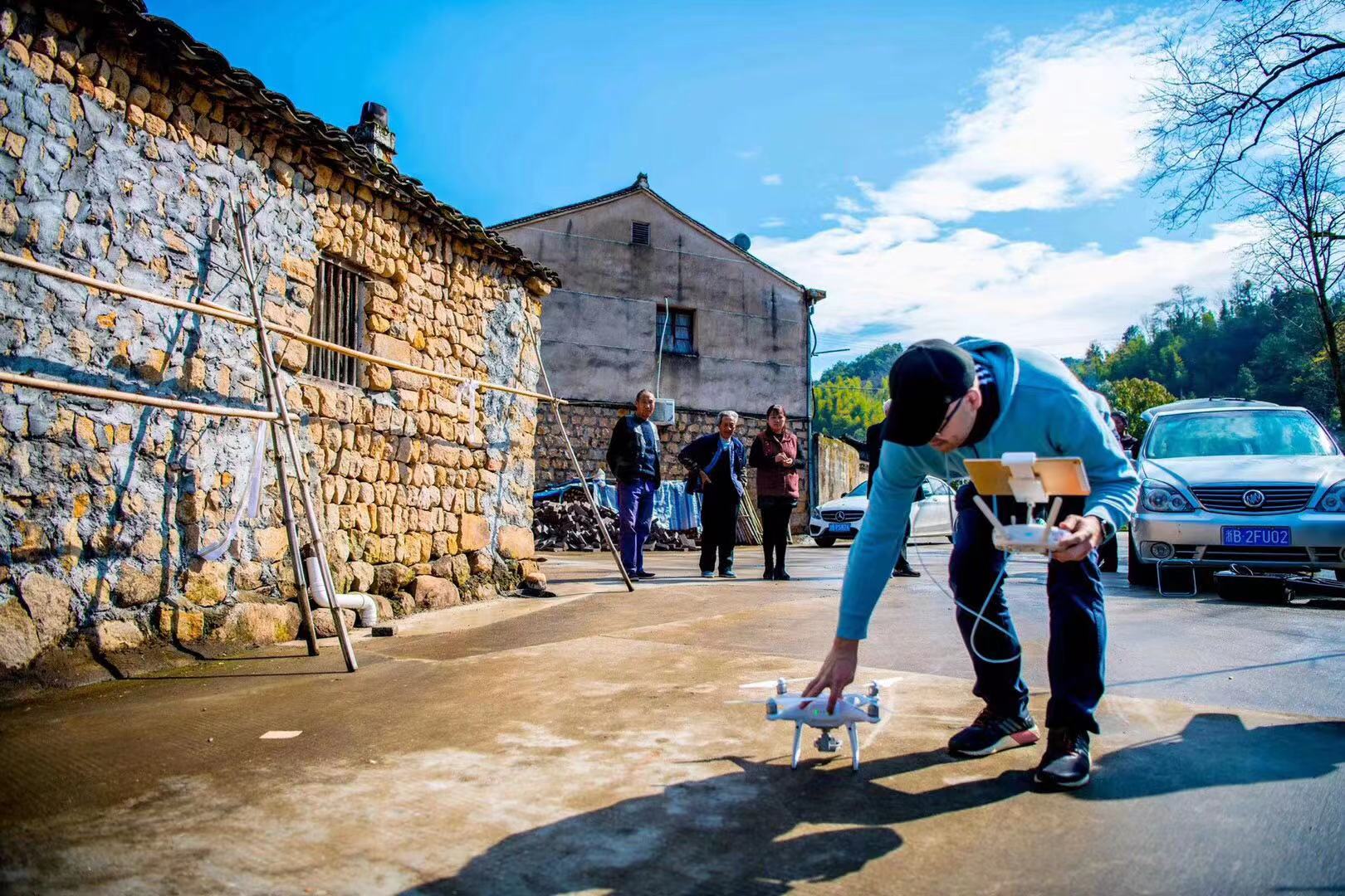 庄以仁教授使用无人机拍摄古建筑并记录数据