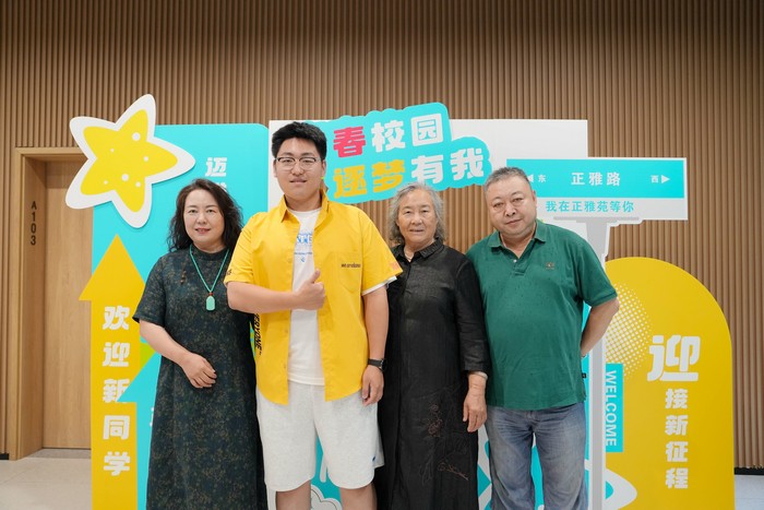 2024级新生和家长在校园里合影留念