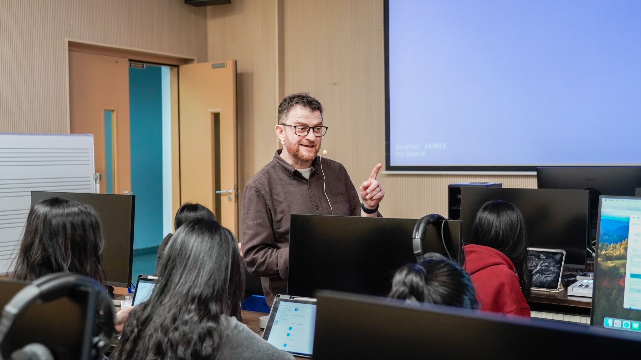 Sansom教授在文化与创意学院教授新媒体音乐创作和影视音乐创作等课程。“学生们乐于学习,也很热情,经常在课后表达对课程的喜爱,让我感到很温暖。”他计划接下来在课程中引入更多互动和小组讨论,鼓励学生更积极地参与课堂。