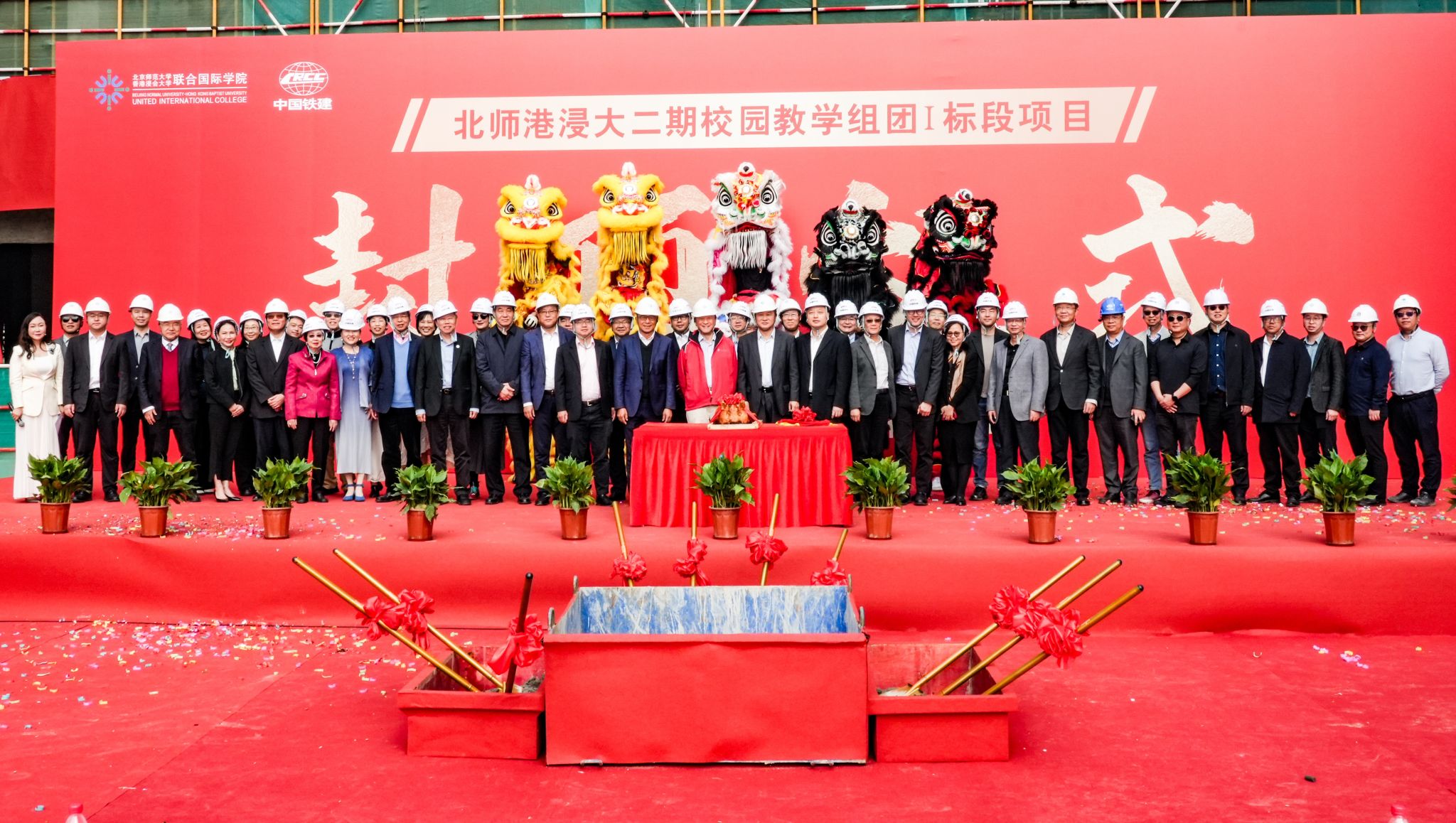 当天,北师港浸大师生和各界嘉宾还见证了二期校园教学组团I标段封顶。凤凰山下、会同村旁,一座大学小镇呼之欲出。