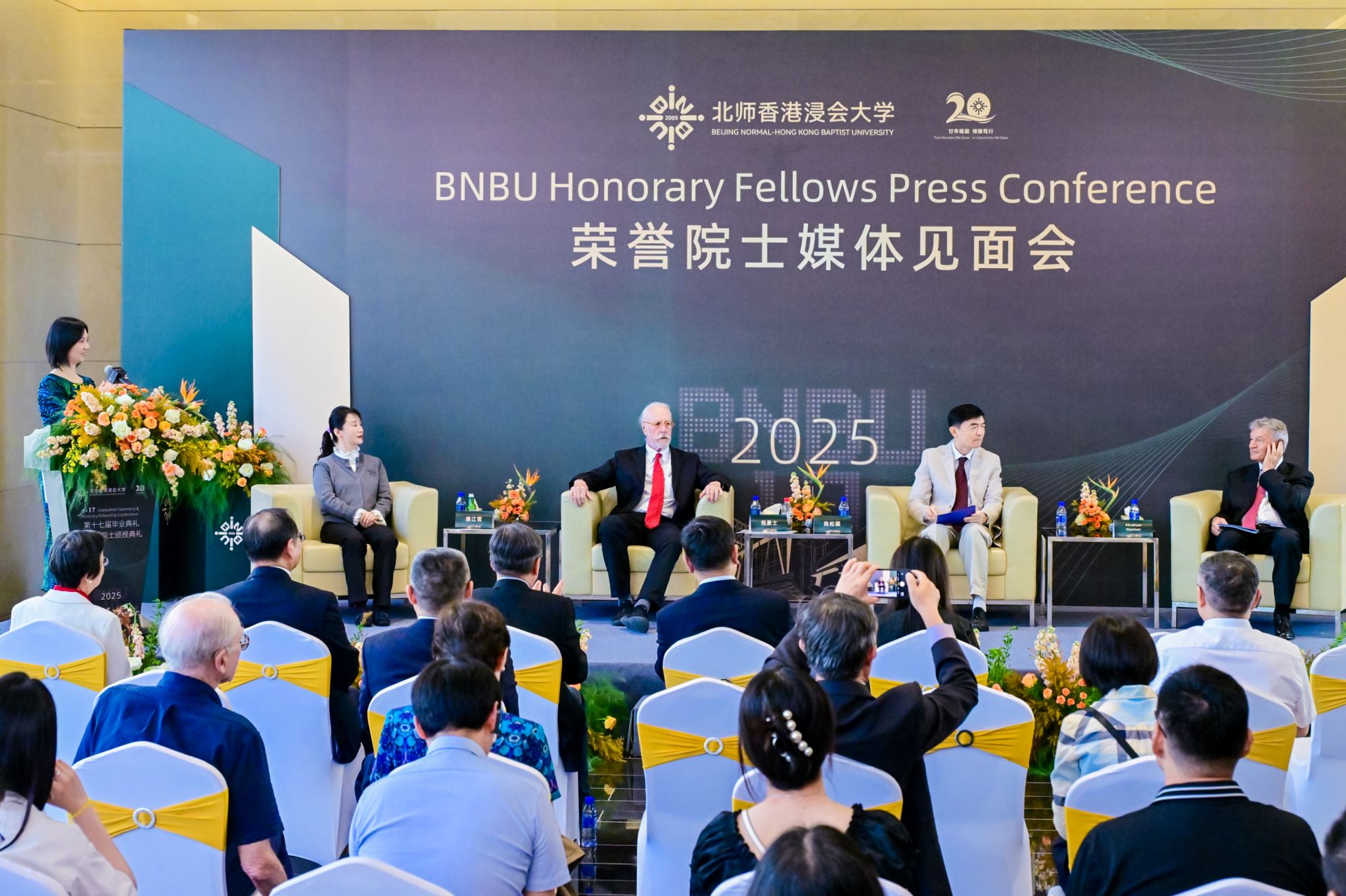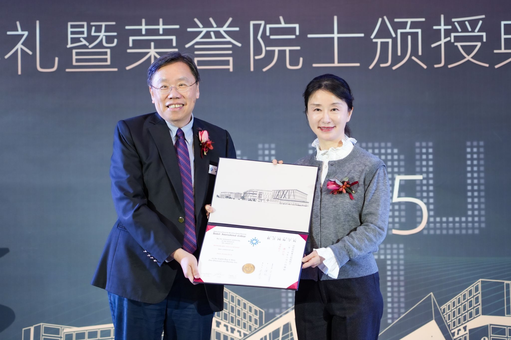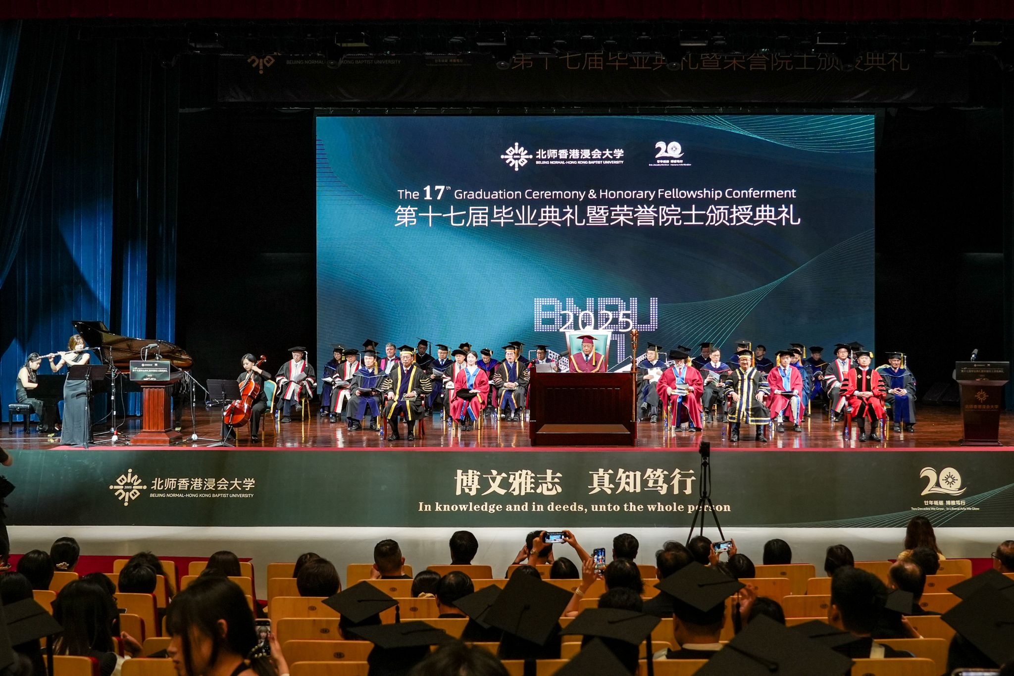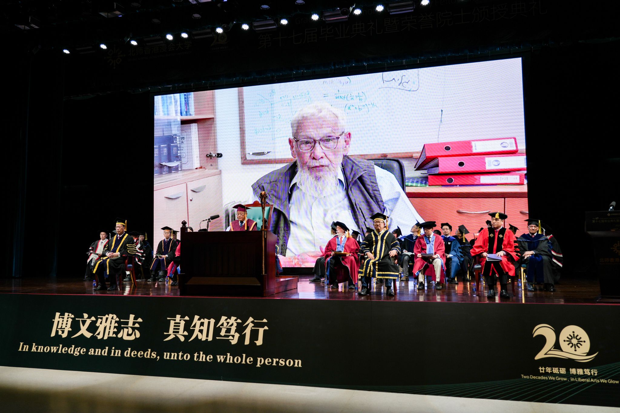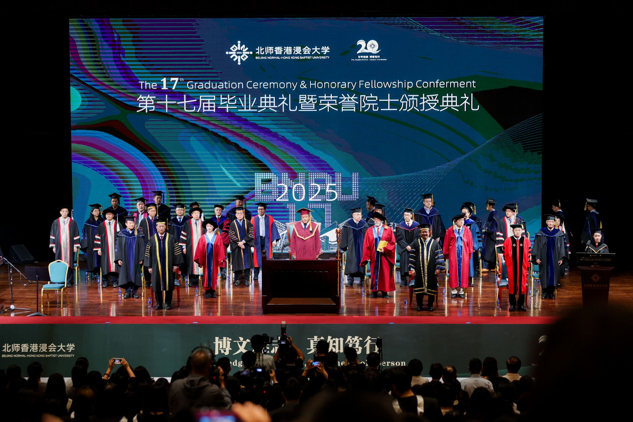 颁授典礼由北师港浸大校董会主席、北京师范大学常务副校长王守军博士主礼。香港浸会大学校董会暨咨议会主席黄英豪博士、香港浸会大学校长卫炳江教授亦出席典礼现场。