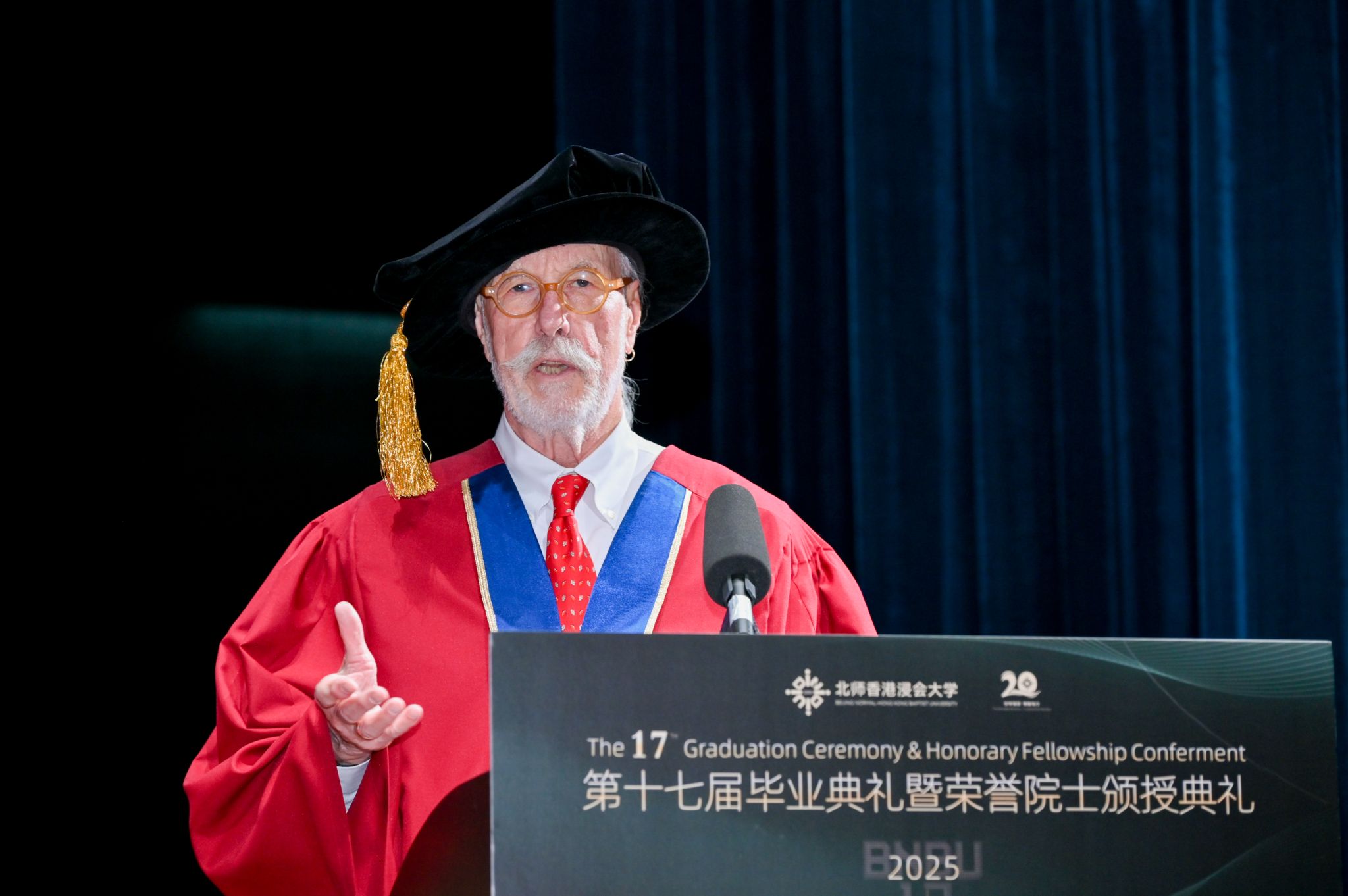 美国著名汉学家、威斯康星大学麦迪逊分校荣休讲座教授倪豪士教授作为荣誉院士代表致谢辞。“接受荣誉院士荣衔,不仅是我个人的荣光,更是以绵薄之力助力北师港浸大发展之良机。”他祝愿学校在下一个二十年,能以同样的探索、勇气与文化交流精神,实现更加辉煌的成就。