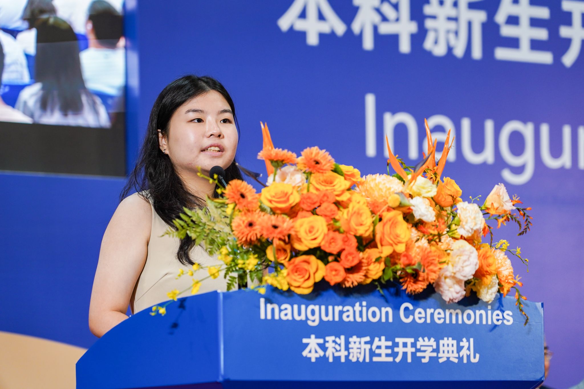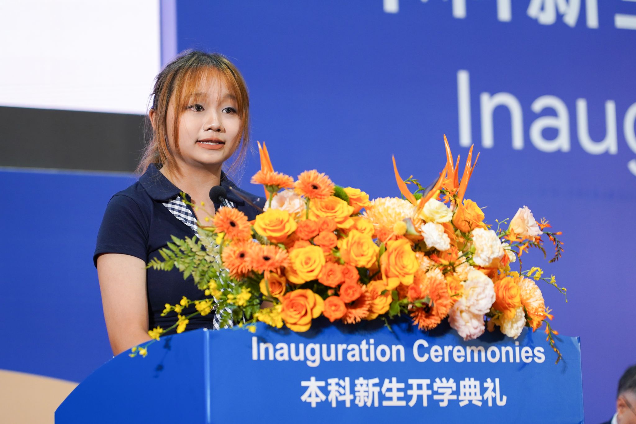 “让我们携手同行,拥抱BNBU的包容环境与强大支持,尽情探索,潜心学习,彼此扶持。”来自广东的新生代表刘雅楠在典礼上致谢辞。